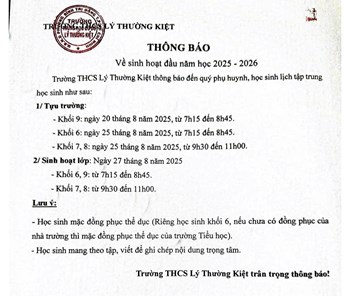 Về việc không thu học phí học sinh trường THCS Lý Thường Kiệt từ tháng 1 năm 2025